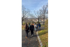 Po prohlídce krypty pravoslavného kostela sv. Cyrila a Metoděje jsme se přesunuli směr Žižkov. Po krátkém občerstvení v McDonaldu jsme vyběhli na Vítkov k Národnímu památníku. Zde jsme si prohlédli věnce, které tam dopoledne položili političtí představitelé státu k uctění památky válečných veteránů.
